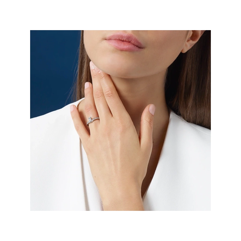 Chaumet Joséphine Aigrette solitaire in platinum, set with a 0.50 carat pear-shaped diamond and paved with brilliant-cut diamonds.